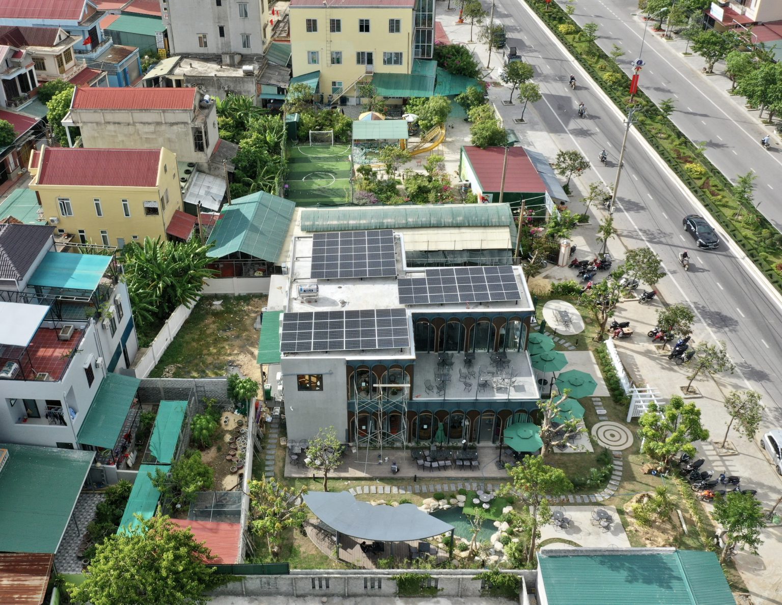 Cafe sạch kết hợp năng lượng sạch Tên dự án: Cafe sạch kết hợp năng lượng sạch Hạng mục: Điện năng lượng mặt trời Đơn vị thực hiện: Công Ty TNHH Xây Dựng Điện Tân Tạo Hệ thống điện mặt trời hòa lưới 1MWP Thi công Hệ Thống Điện Mặt Trời Độc Lập 22kWP-Lưu Trữ 60kWh